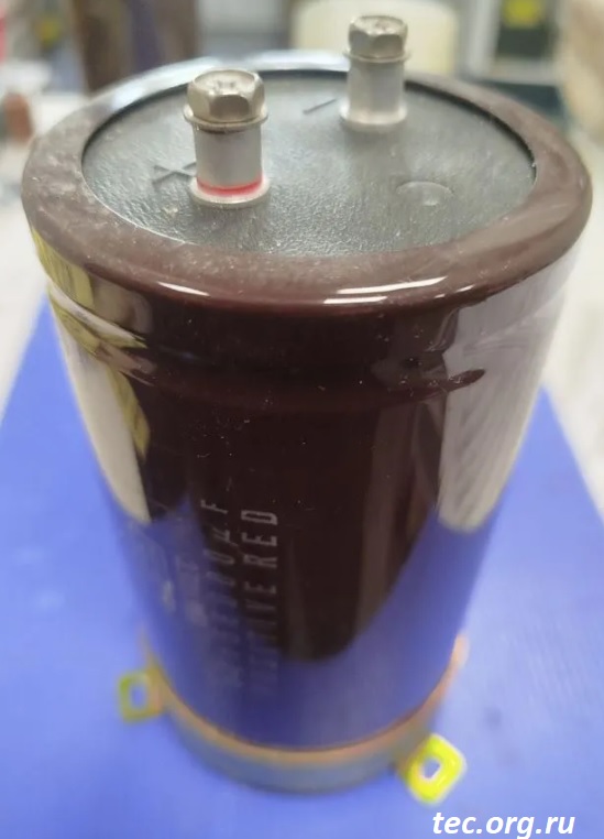 Электролитический конденсатор Nippon Chemi-Con с болтовыми выводами (Screw) и с торцевым болтовым креплением. Конденсаторы демонтированные с оборудования (Б/У).