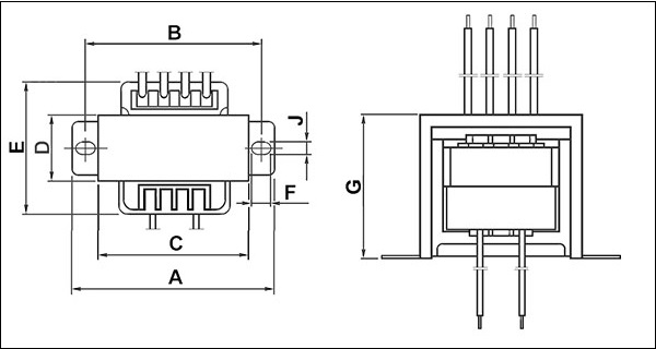 Трансформатор снабжен ушками для крепления на шасси и гибкими выводами для навесного монтажа.