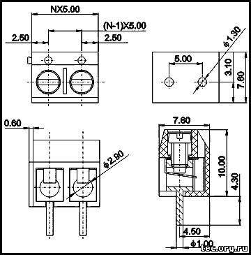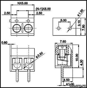 Чертёж клеммника RG301-5.0-02P-14-00A: