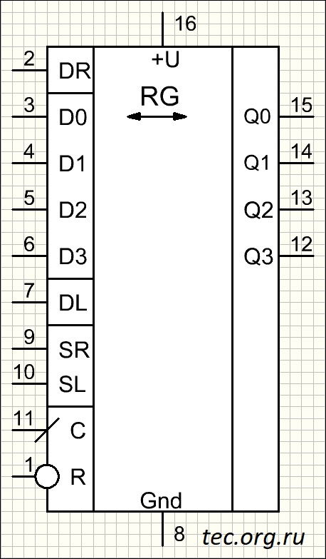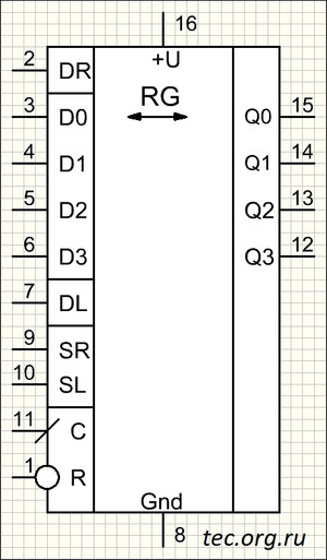 * На наш взгляд логика наименования этих входов не очень удачная, но так приведено в большинстве как отечественной так и зарубежной документации. Вход DR - данные, заносимые в младший разряд т.е. данные, пришедшие "слева", DL - данные заносимые в старший разряд т.е. данные, пришедшие "справа".