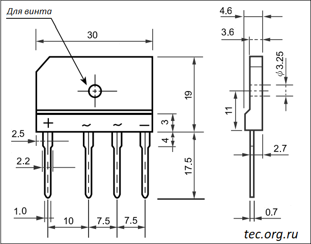 Мост KBK25M применяется для выпрямления токов промышленной частоты 50/60Гц.