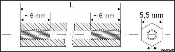 - L=20мм - длина рабочей части стойки (межплатное расстояние).